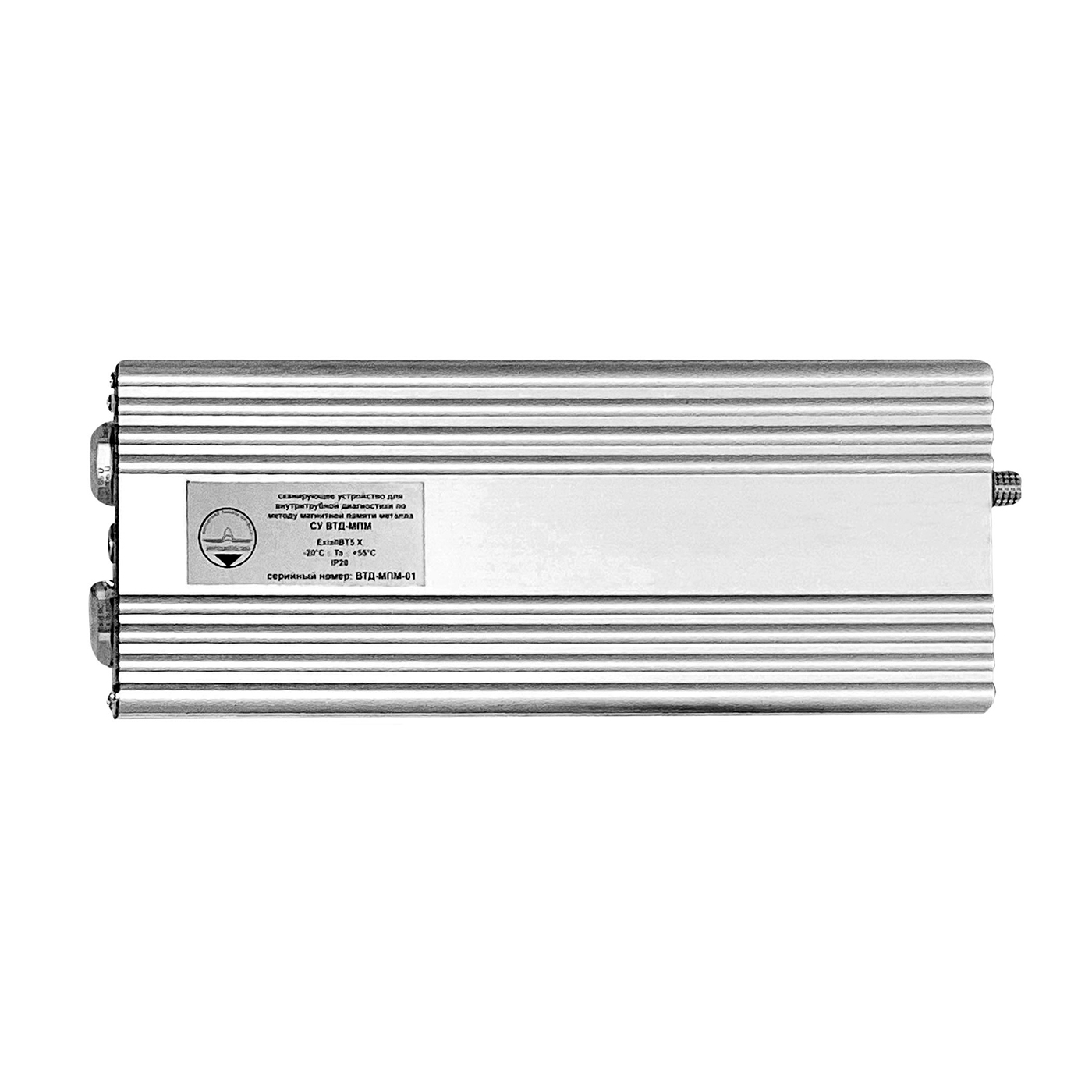 The ILI-MMM SD is manufactured in a sealed projectile type enclosure used during oil pipelines cleaning. General view of ILI-MMM SD coupled with a search piston is shown in the photo. The scanning device, moved inside the pipeline under the transported medium pressure using flux-gate sensors installed uniformly around the disk circumference, measures the self-magnetic stray field (SMSF) intensity, which characterizes the stress-strain state of the pipeline. Information recording is performed automatically in the “timer” mode. At that, the ILI-MMM SD travel time is recorded every 4-5 km of the route.