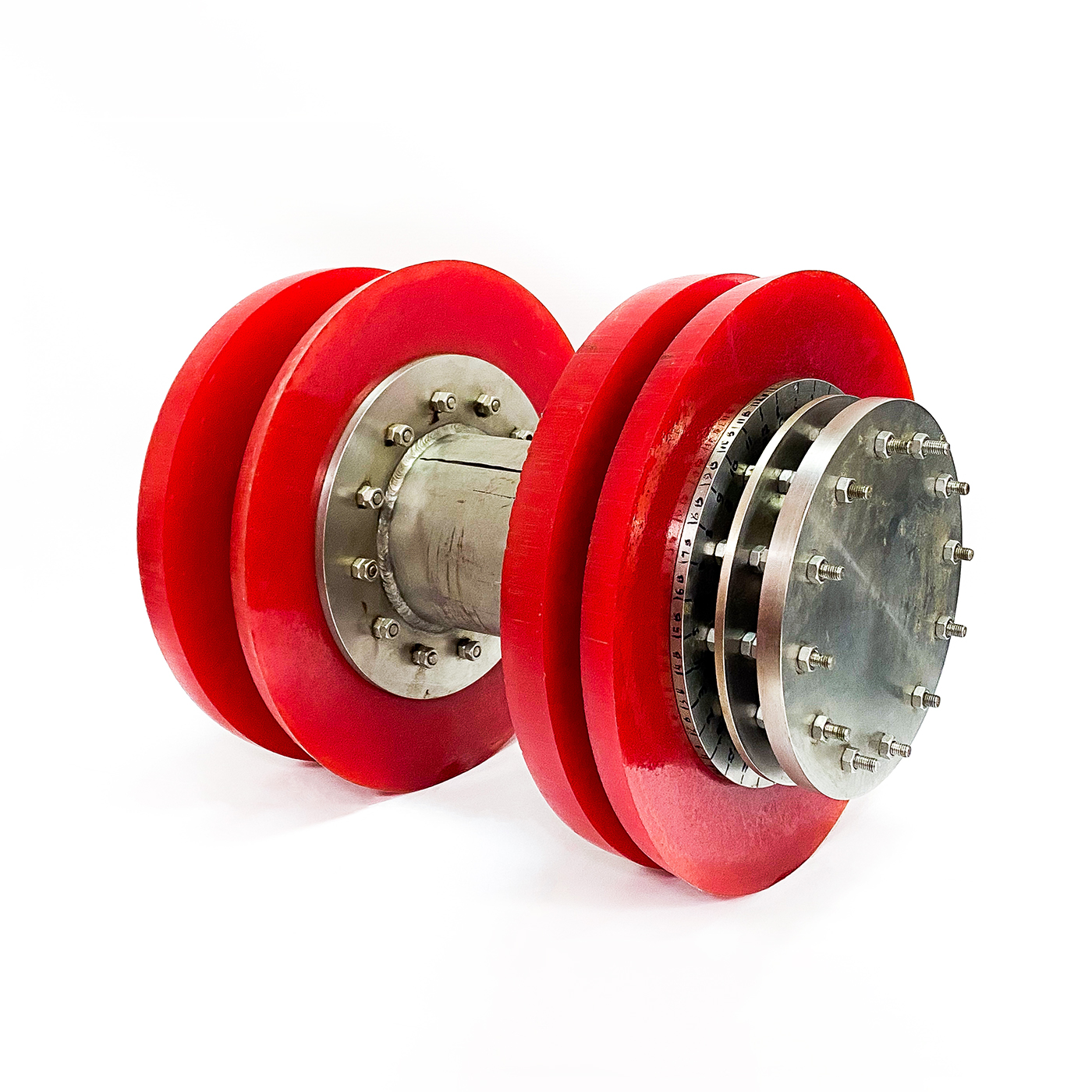 The ILI-MMM SD is manufactured in a sealed projectile type enclosure used during oil pipelines cleaning. General view of ILI-MMM SD coupled with a search piston is shown in the photo. The scanning device, moved inside the pipeline under the transported medium pressure using flux-gate sensors installed uniformly around the disk circumference, measures the self-magnetic stray field (SMSF) intensity, which characterizes the stress-strain state of the pipeline. Information recording is performed automatically in the “timer” mode. At that, the ILI-MMM SD travel time is recorded every 4-5 km of the route.