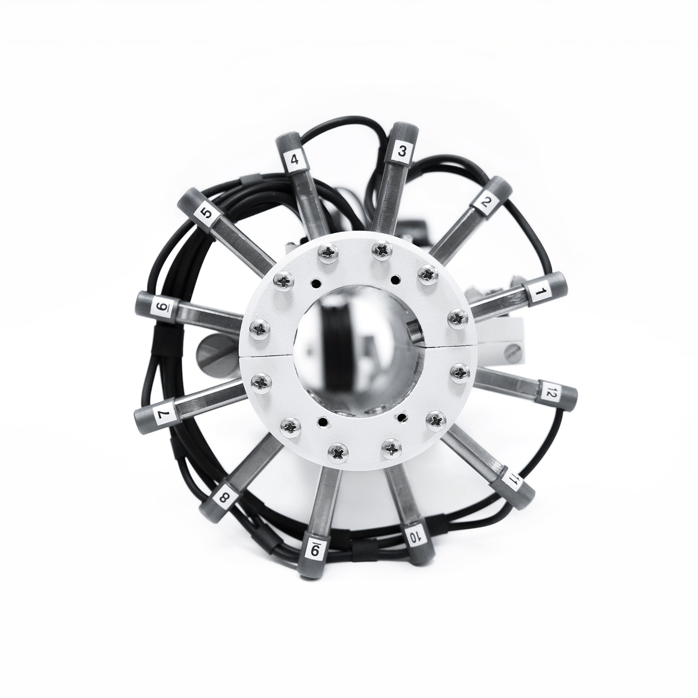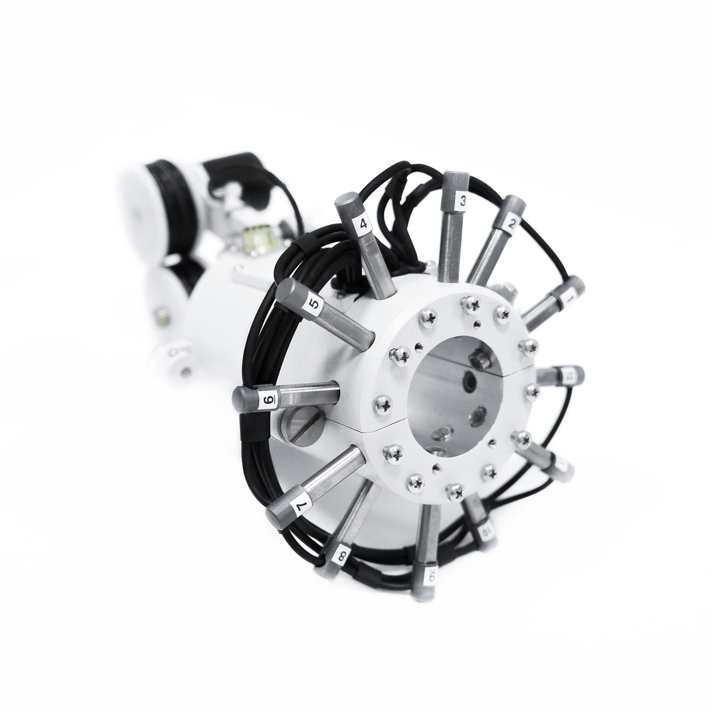 带集成式双磁通传感器的八通道扫描装置。其设计用于检测钢丝绳或小直径长管(从12到60毫米)。15型扫描装置由金属外壳、与被检管子或绳的直径相对应的可拆卸套管和计步器装置组成。