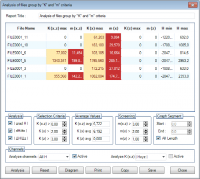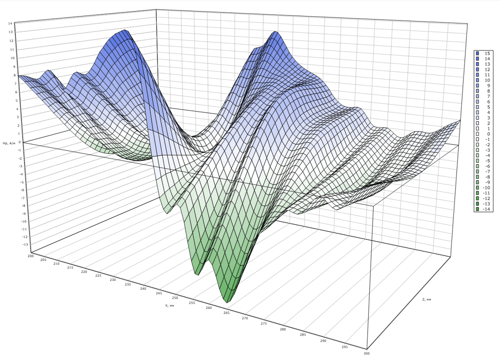 该程序利用剩余磁化分布图(Нр图),可自动绘制微分分布图、Нр梯度图(dH/dx、dH/dz、|grad Hp|图)以及其他表征应力集中程度的诊断参数图。根据检测技术,利用这些图表,可以识别出极限应力集中区域(损伤发展区域)。
